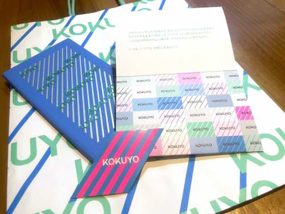 このデザインはカラーやロゴマークの数を組み替えて無限に表現することができます!お土産にもらったトートバッグや紙袋、ステッカーも、コクヨといえば……の、測量野帳もデザイン刷新!早速ワクワクと好奇心を掻き立てられました!今後、名刺交換するのが楽しみでなりません!