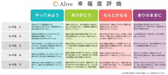 その評価内容には、ウェルビーイング研究の第一人者の前野隆司教授*が提唱する「幸せの4因子」を取り入れているのだとか。