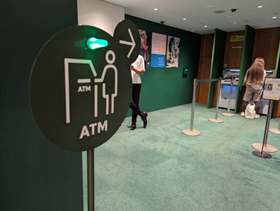 左側がこんな感じで銀行エリアです。奥に窓口、手前にはATMがありました。何となく色味からしてもここもスターバックスさんのような雰囲気。ぱっと見ではATMがあるとは思えないくらいシックで大人な雰囲気でした。