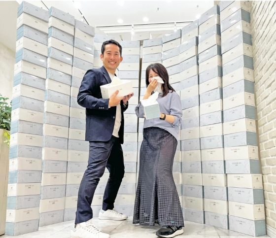 昨年大好評だった、鼻が赤くなりにくい「高保湿ティッシュ」は今年も全社員へ配布。