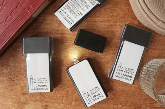 ちなみにこちらはアクモキャンドルというコンパクトなライト、オンオフはできませんが、1日たった0.5CCの水を浸けるだけで約1週間継続使用できる優れもの。ポケットサイズなので、アナタのパンパンな防災リュックの隙間にも、まだ入るんじゃない?