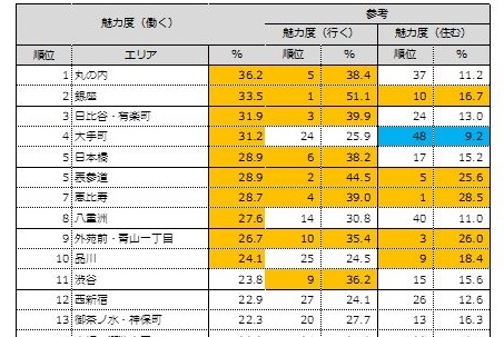 1位「丸の内」、2位「銀座」、3位「日比谷・有楽町」となりました。丸の内人気、高いですね~。