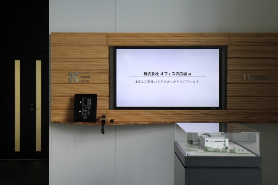 エントランスホールには社屋のミニチュアが。飽きさせない工夫が感じられますわ