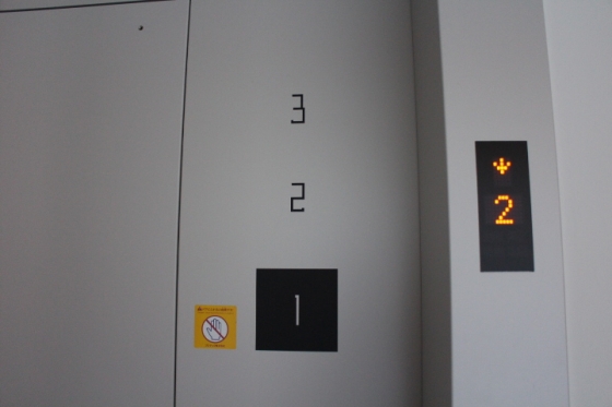 「エレベーターで3階へお越しください」へぇー扉に直接文字を書いちゃってあるみたい。シンプルでキレイ。