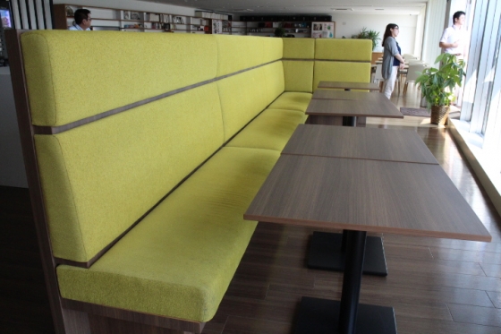 背もたれの高いゆったり席も。自然光がたくさん入って明るいなー