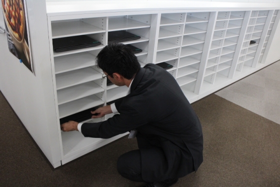 フリーアドレスに欠かせないロッカーはちょっと大きめ。