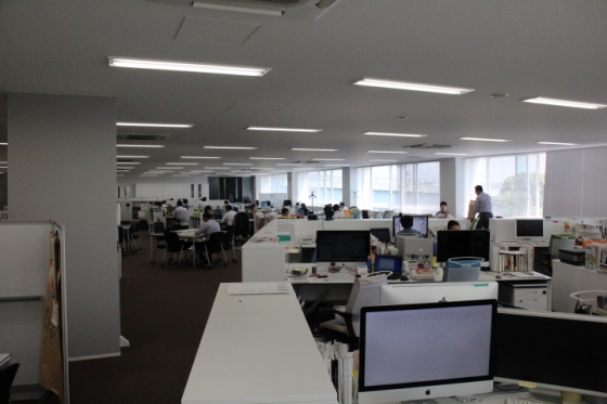 画像処理とか現物を広げながらの色味照合とかをするから、広いデスクが必要なんですね~MACが何十台もあるそう。