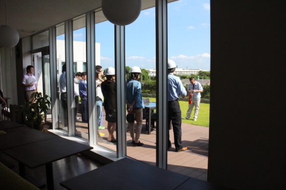 さぁ、執務室におジャマしましたよ。グループごとのフリーアドレスを採用しているんだって。明るいなー
