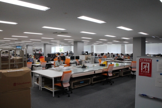 2013年2~3月に移転した大洋印刷さん。浜松町、東陽町、大井町にそれぞれあった本社、製版工場、印刷工場をひとつに集結することで、別部署の社員が一同に会するのも簡単にできるようになり、作業効率の向上はもちろんのこと、コミュニケーション活性化に大いにつながったそうです。