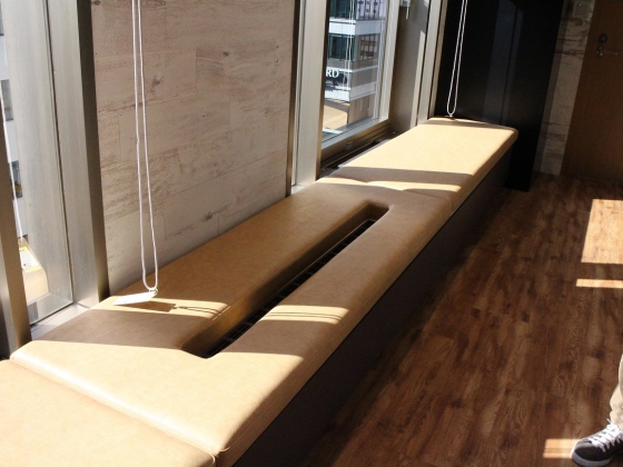 一番驚いたのが、高さがちょうどいいからってペリ空調に座っちゃおうという奇想天外なベンチシート。穴を開けてねぇ、なるほど。