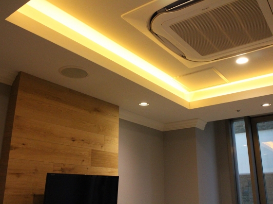 壁の一部がウッディだったり、壁紙がうっすらグレーだったり、天井のデザインも凝ってるなぁ!
