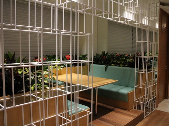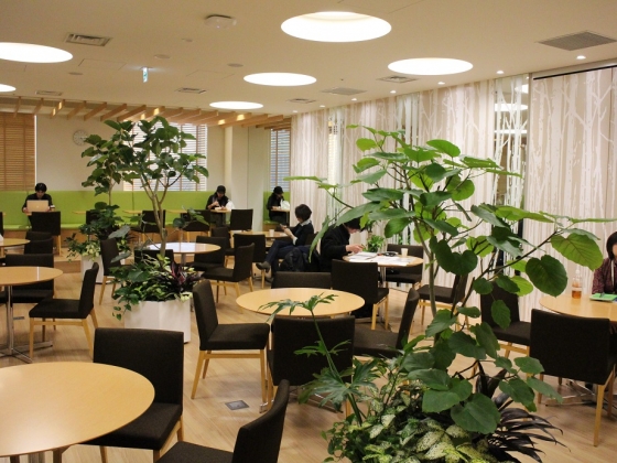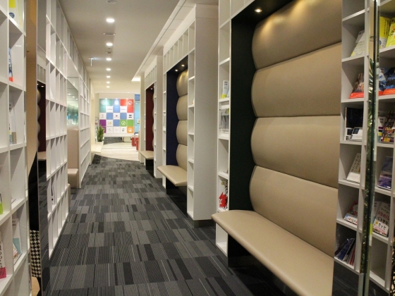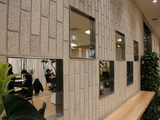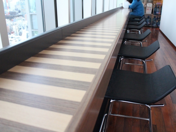 こちらのフロアにもちょっとした休憩スペースが。眺めのいいカウンター席なんですね。