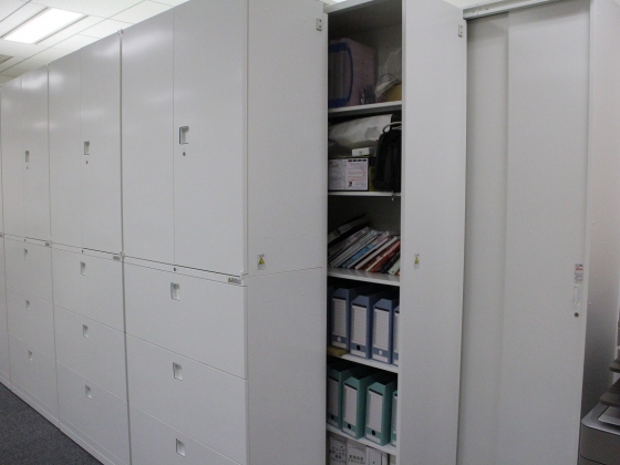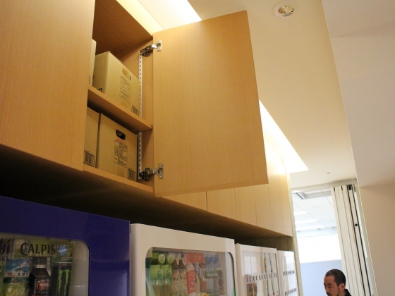 社内のキャビネットは端に寄せて、なんと3段重ね!!収納上手~♪