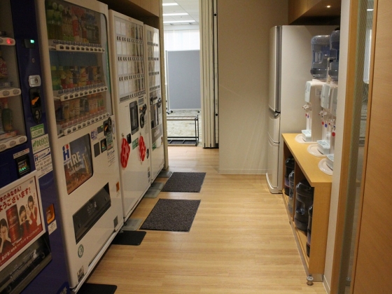 たっぷり4台の自販機と、ウォーターサーバー、オフィスファミマも完備です