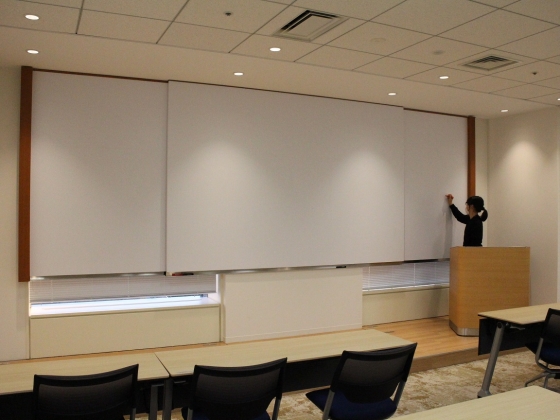 おおーっ!ホワイトボードなスクリーンが左右に伸びた!真ん中に投影しつつ、横にコメント書いたりできるんだ!これほしい★