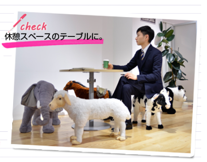 思わずなでたくなっちゃう感触、個人的に使ってオットマンにしてもいいし、シロクマだらけの会議室、ヒツジだらけの会議室とかでまとめても楽しそう♪