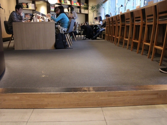 奥の方には一段上がったスペースが。こちらは仕事に集中できそうなスペースですね。