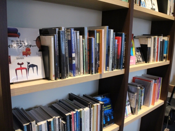 建築やインテリア系の書籍がたくさんの本棚も。