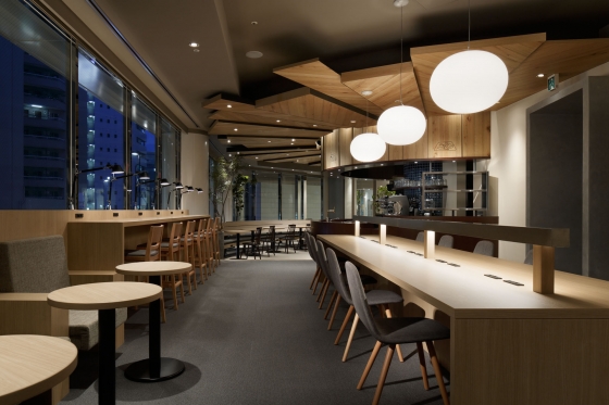 一つひとつのテーブルも奥行き広めに作られていて、PCとプレートの料理を両方置けるよう配慮された広さなのだとか。
