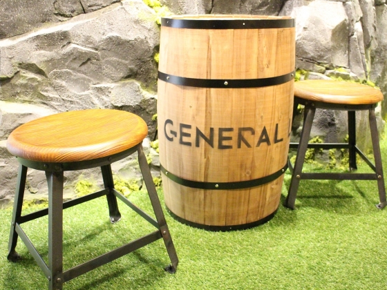 樽にも会社の社名が入っているなど、小物にもさりげないこだわりが。