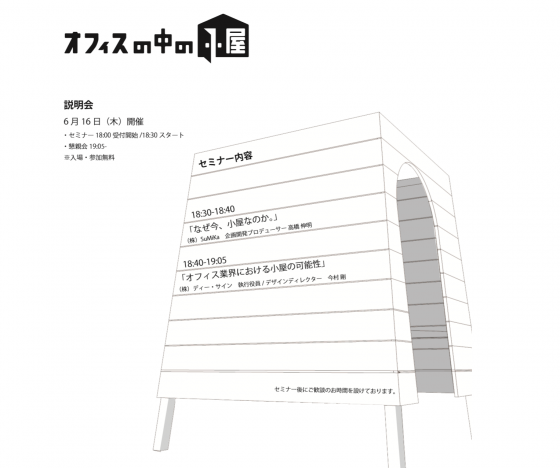 今回のセミナーでは「オフィスの中の小屋」の第1弾開発商品の発表をするそうです。