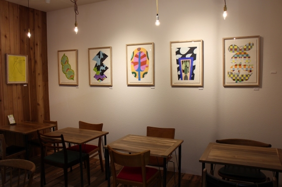自宅のリビングにいるような感覚でリラックスして絵を見ていただきたく、ギャラリーで展示したアーティストの作品の一部は、奥にあるカフェで見ることができるようにしています。