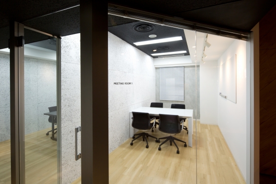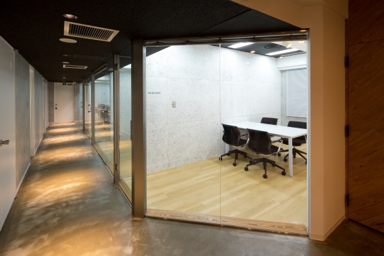 また、会議の声が漏れないようにと、壁面に吸音素材をつかって仕上げるなど細かい部分も気を付けています。