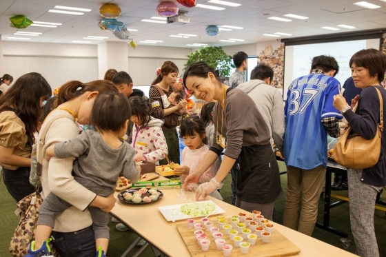 ひとつ思い浮かぶのは、「ファミリーデー」の開催です。創業8年目にしてはじめての試みでしたが、社員とそのご家族あわせて60名近くと想像以上の参加者が集まりました。お弁当の商品開発を行う“究極のごちそう開発部”のスタッフたちが作ったおかずを、お子さんたちが自分で選びお弁当を完成させていくという構成で、弊社ならではの「食」をテーマにした楽しいイベントとなりました。