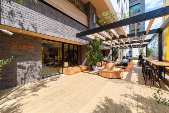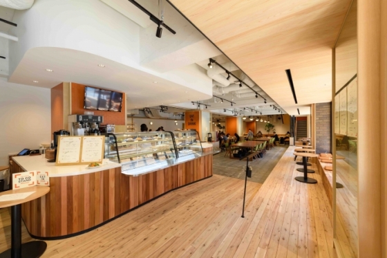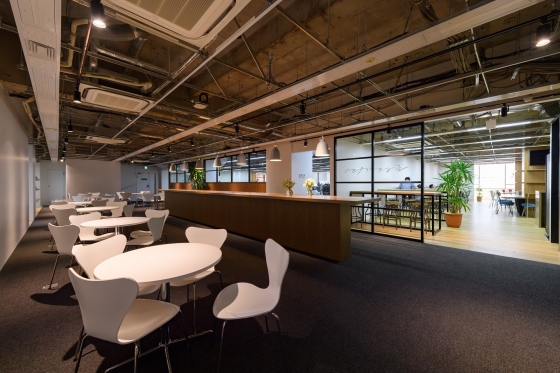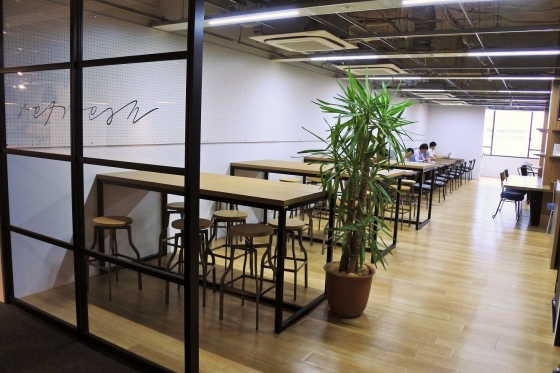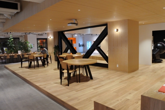 広くて明るい日差しが降り注ぐ、快適なカフェです^^社員だけではなく、コワーキングオフィスで働く人、そして一般の方も利用できるそうです。