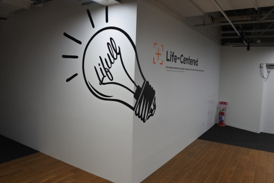 奥にあった壁に大きな絵が描かれていますよ。よく見ると電球の中、筆記体でLifullって書いてある!