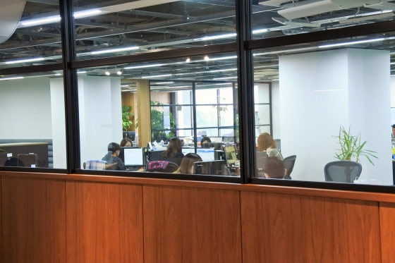 奥のほーうに見えるガラスのお部屋が社長室とのこと!