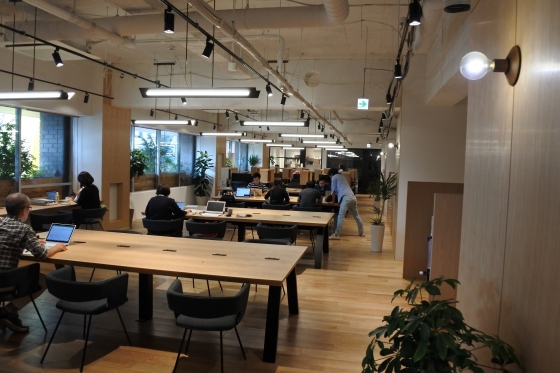 2階はエントランス以外にコワーキングスペース。会員用の固定席とスポット利用できるフリーの席があります。