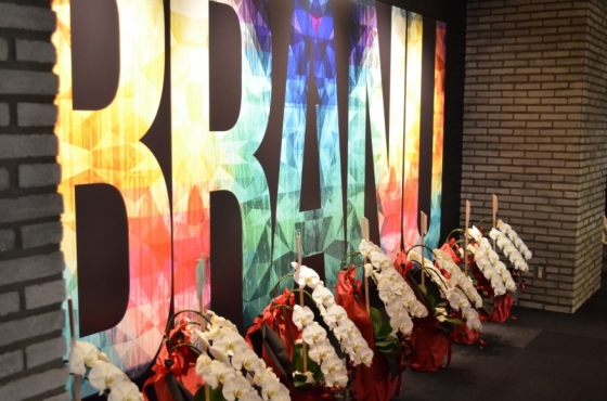 ドドーン!と「BRANU」のロゴアートが!移転お祝いのお花もたくさん♪