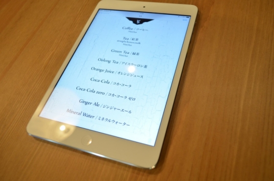 「お好きなお飲み物どうぞ♪」と差し出されたのはメニューon iPad!!!おっしゃれー。