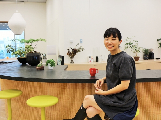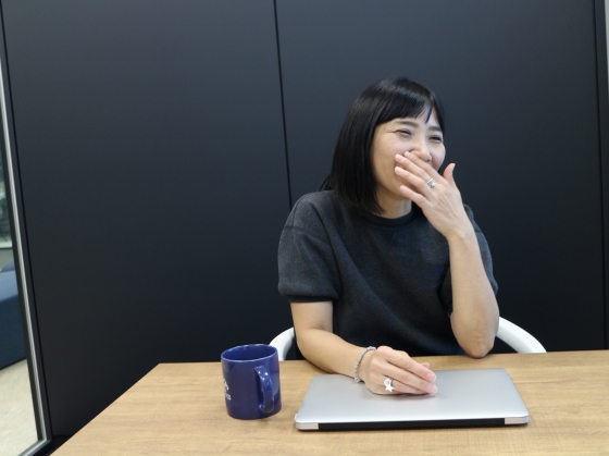 他業界、他職種から転身し、株式会社ユーザベースのコーポレート部門で働くワーキングママの重松花さん。かつてこんなに前向きで楽しそうにお仕事する総務さんに出会ったことがあっただろうか。