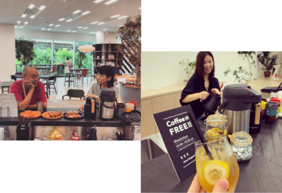 カフェはハンドドリップでコーヒーを淹れていて、社員にもご来客にも好評なんですよ。普段話せない社員とのコミュニケーションがとれるのでととてもいい機会になっています。