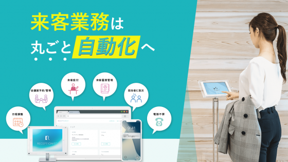 | Information | 日程調整から来客受付までを自動化するクラウド受付システム RECEPTIONIST(レセプショニスト) https://receptionist.jp/ 株式会社レセプショニスト(2020年3月1日、ディライテッド株式会社より社名変更) 東京都渋谷区桜丘町20-1 渋谷インフォスタワー20階 |