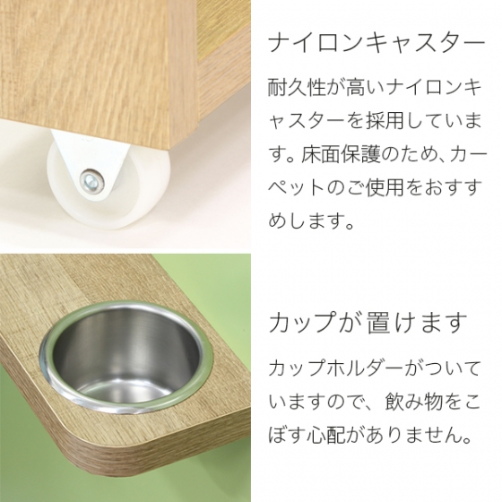 そして嬉しいのがドリンクホルダー。コンパクトな天板では気になってしまう飲み物も、専用ホルダーなら安心^^