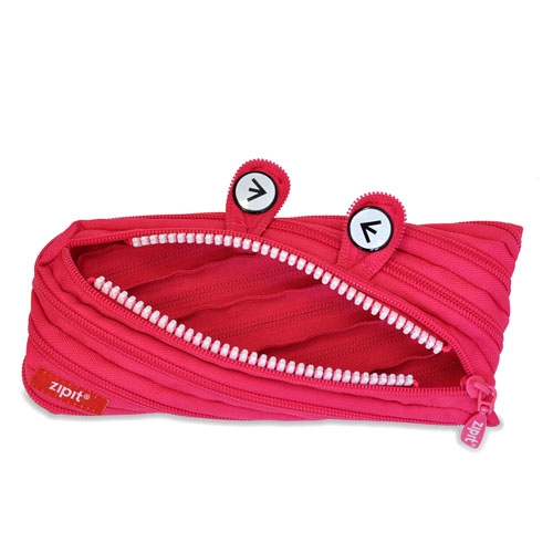 一本のジッパーがポーチに早変わり。ジッパーを開けるとギザギザの歯が出てきますが、カラーによってお茶目な目の表情がみんな違います。