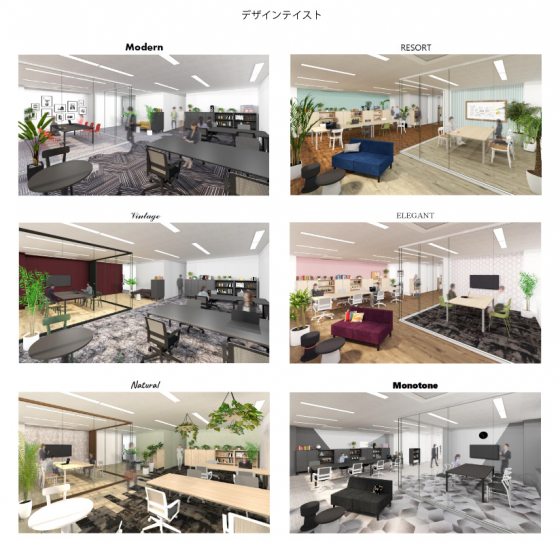 今村)「かっこいいオフィスを目指したいがデザインのことはよくわからない、という方々にも選んでいただきやすい、シンプルでわかりやすいデザインテイストを用意しました。以前の構想では、カリフォルニア風とかボヘミアン風なんかもあったんですが、ちょっと伝わりにくいですよね(笑)」