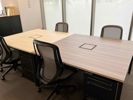 お、のびのびと配置されているのはオカムラさんのワークキャリアーですね!まっすぐに配置されたテーブルよりもリラックスして議論に参加できそうな感じがします。