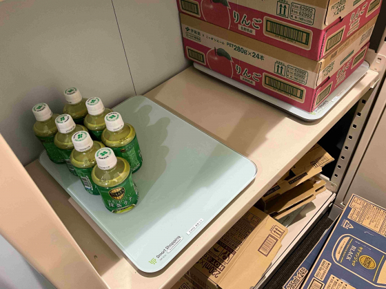 ストックを体重計みたいなやつにのっけるとその重量データが伊藤園さんに自動的に報告され、在庫補充がなされるそう!すご!
