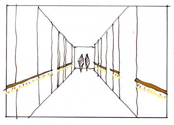 このイラストは御茶ノ水の「井上眼科」 の誘導手すり装置です。(2015年に国際UD協議会のアワード受賞)