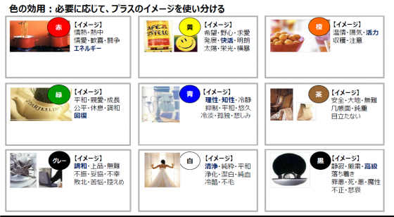 色はそれぞれイメージを持っています。必要に応じてそれらを使い分けることが大事です。