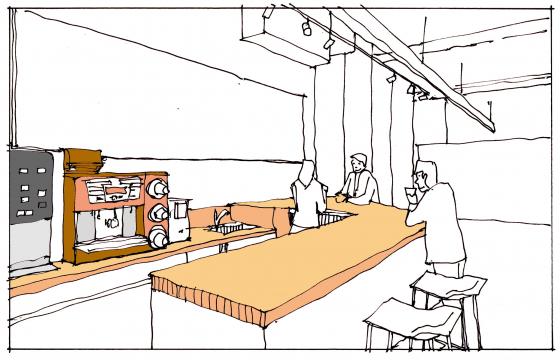 このイラストでは、社員が共同で制作したアートが壁面に飾られています。皆で気持ちをひとつにして作品をつくるという共通体験があることで、気持ちを通い合わせることにもつながります。コロナ禍により共通体験が減っているので、このような取り組みはより大切でしょう。