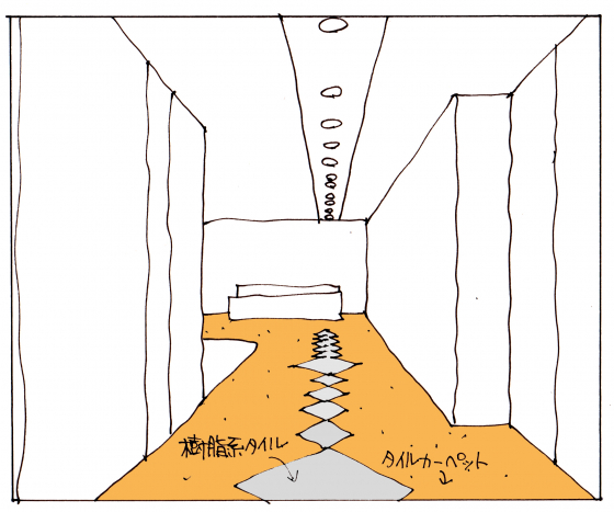 前述の井上眼科では、光を活用した誘導サインのほか床の素材を変えることで、足裏の感触でもガイドのラインがわかるようになっています。