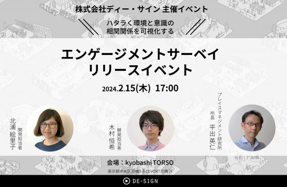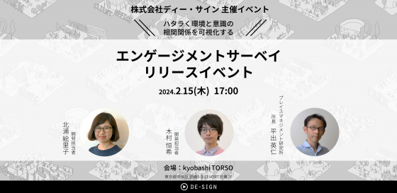 「ハタラくをドライブさせる。」をミッションに掲げる株式会社ディー・サイン(代表取締役社長:長尾 成浩)が運営するプレイスマネジメント研究所が、「エンゲージメントサーベイ」をリリース!その記念イベントが開催されますよ!
