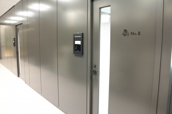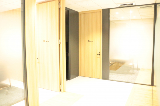 通路の左側は、手前から(写真では奥から)人事専用ルーム、社長室(No.9)、役員会議室(No.8)、6人用会議室(No.6と7)が並びます。