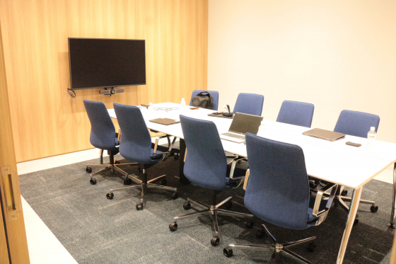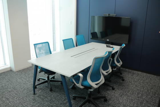 6人用会議室はコーポレートカラーに合わせたブルーの配色です。