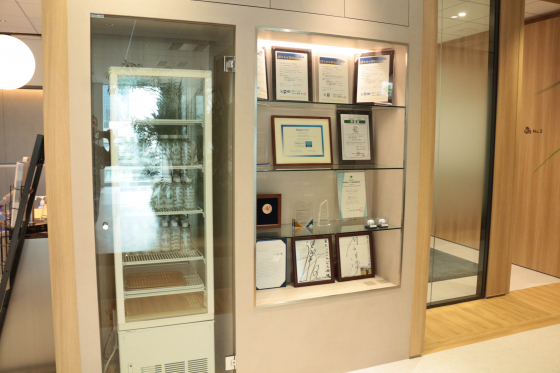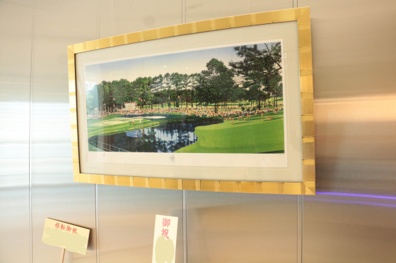 ステンレスみたいなシャープな印象の広い壁面、いろいろ飾り放題。ゴルフ関連のニオイがしますね・・・